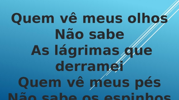 - Quem vê meus olhosNão sabe As lágrimas que derrameiQuem vê meus pésNão sabe os espinhos que pisei