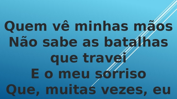 - Quem vê minhas mãosNão sabe as batalhas que traveiE o meu sorrisoQue, muitas vezes, eu o disfarcei