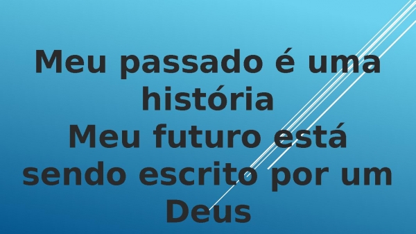 - Meu passado é uma históriaMeu futuro está sendo escrito por um DeusQue cuida de mim com muito amor