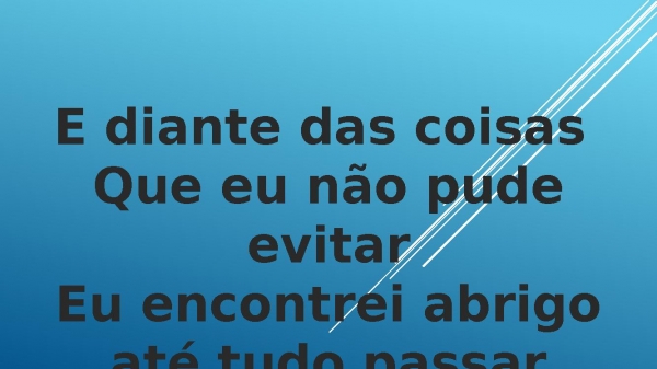 - E diante das coisas Que eu não pude evitarEu encontrei abrigo até tudo passar