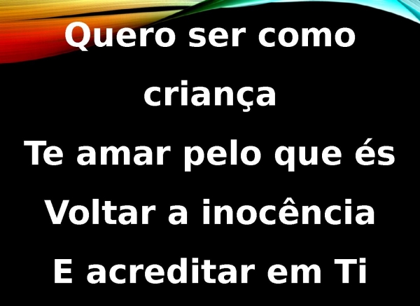 - Quero ser como criançaTe amar pelo que ésVoltar a inocênciaE acreditar em Ti