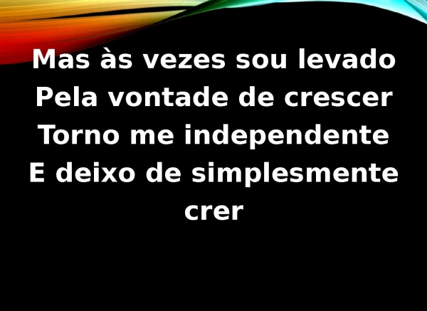 - Mas às vezes sou levadoPela vontade de crescerTorno me independenteE deixo de simplesmente crer