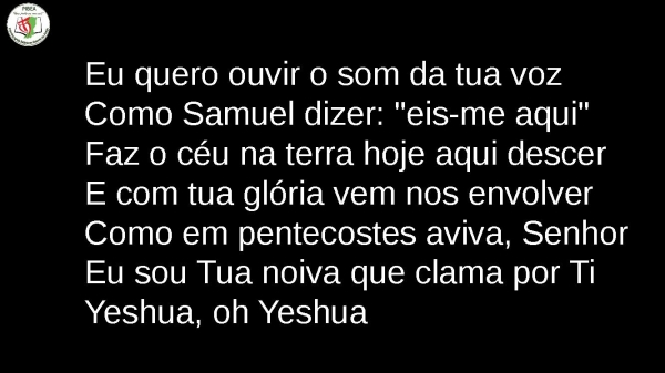 - Eu quero ouvir o som da tua vozComo Samuel dizer: "eis-me aqui"Faz o céu na terra hoje aqui descerE com tua glória vem nos envolverComo em pentecostes aviva, SenhorEu sou Tua noiva que clama por TiYeshua, oh Yeshua