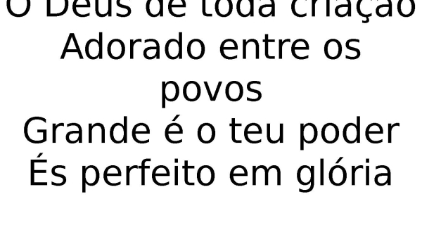 - O Deus de toda criaçãoAdorado entre os povosGrande é o teu poderÉs perfeito em glória