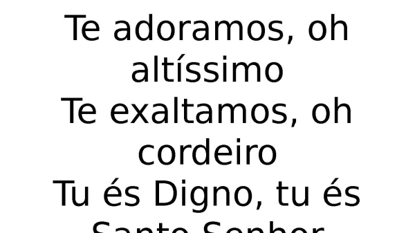 - Te adoramos, oh altíssimoTe exaltamos, oh cordeiroTu és Digno, tu és Santo Senhor