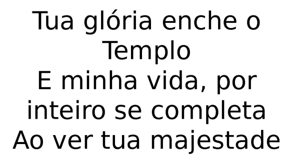 - Tua glória enche o TemploE minha vida, por inteiro se completaAo ver tua majestade