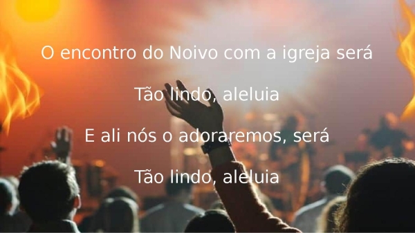 - O encontro do Noivo com a igreja seráTão lindo, aleluiaE ali nós o adoraremos, seráTão lindo, aleluia