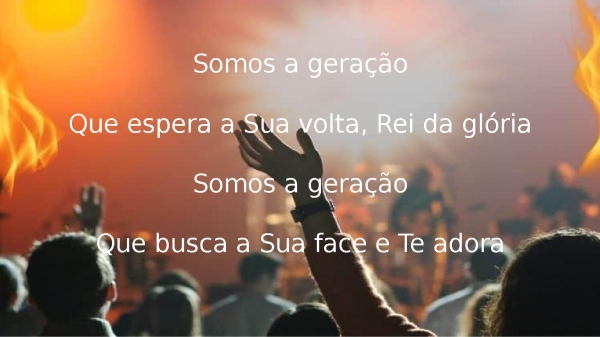 - Somos a geraçãoQue espera a Sua volta, Rei da glóriaSomos a geraçãoQue busca a Sua face e Te adora