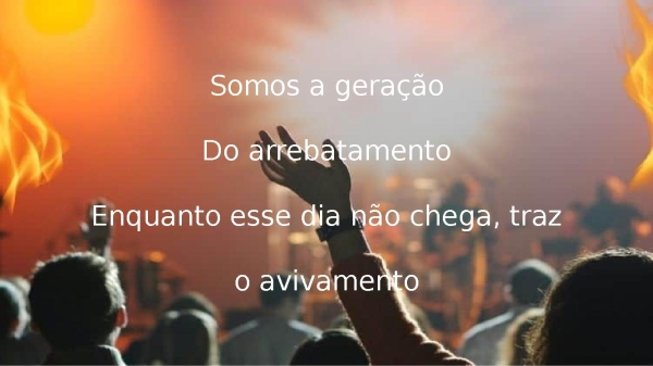 - Somos a geraçãoDo arrebatamentoEnquanto esse dia não chega, trazo avivamento