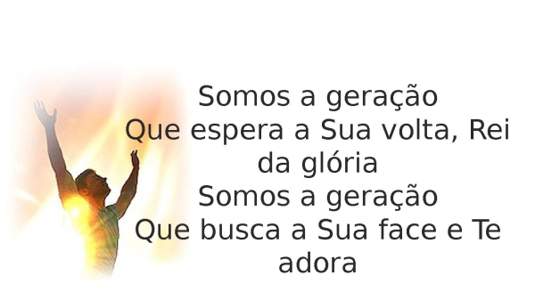 - Somos a geraçãoQue espera a Sua volta, Rei da glóriaSomos a geraçãoQue busca a Sua face e Te adora