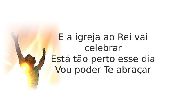 - E a igreja ao Rei vai celebrarEstá tão perto esse diaVou poder Te abraçar