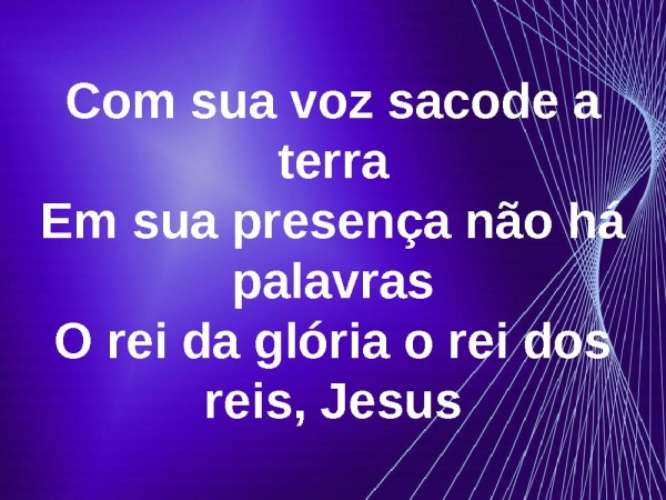- Com sua voz sacode a terraEm sua presença não há palavrasO rei da glória o rei dos reis, Jesus