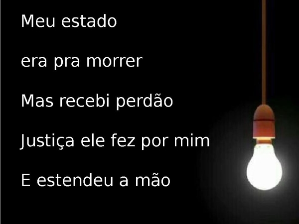 - Meu estado era pra morrerMas recebi perdãoJustiça ele fez por mimE estendeu a mão