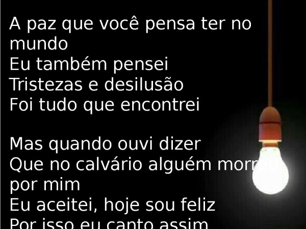 - A paz que você pensa ter no mundoEu também penseiTristezas e desilusãoFoi tudo que encontreiMas quando ouvi dizerQue no calvário alguém morreu por mimEu aceitei, hoje sou felizPor isso eu canto assim