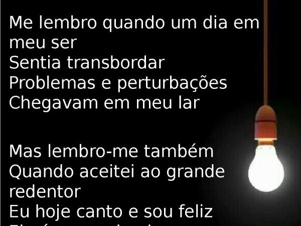 - Me lembro quando um dia em meu serSentia transbordarProblemas e perturbaçõesChegavam em meu larMas lembro-me tambémQuando aceitei ao grande redentorEu hoje canto e sou felizEle é meu salvador