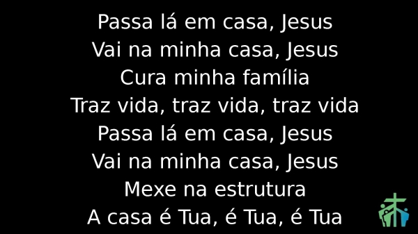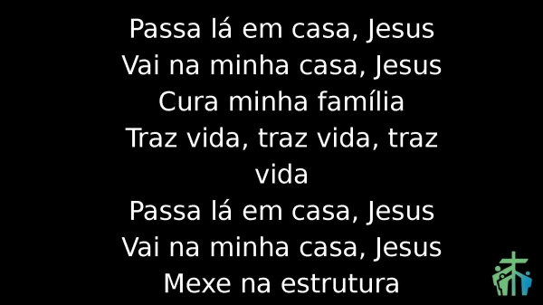 - Passa lá em casa, JesusVai na minha casa, JesusCura minha famíliaTraz vida, traz vida, traz vidaPassa lá em casa, JesusVai na minha casa, JesusMexe na estruturaA casa é Tua, é Tua, é Tua