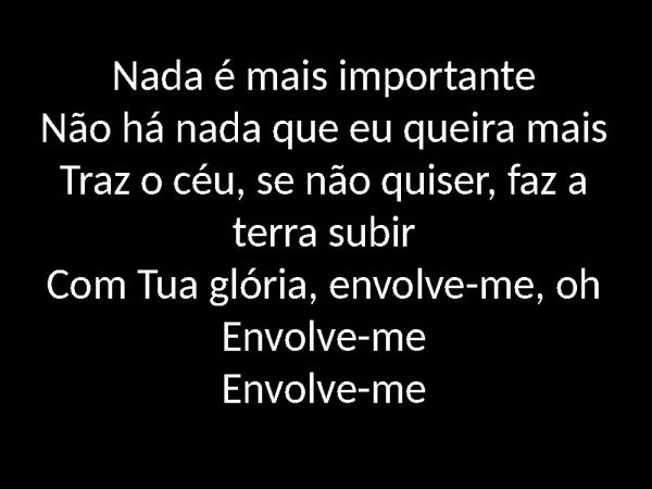 - Nada é mais importanteNão há nada que eu queira maisTraz o céu, se não quiser, faz a terra subirCom Tua glória, envolve-me, ohEnvolve-meEnvolve-me