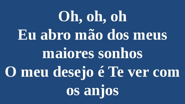 - Oh, oh, ohEu abro mão dos meus maiores sonhosO meu desejo é Te ver com os anjos