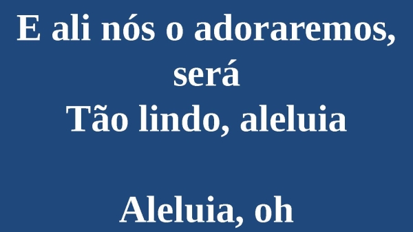- E ali nós o adoraremos, seráTão lindo, aleluiaAleluia, oh