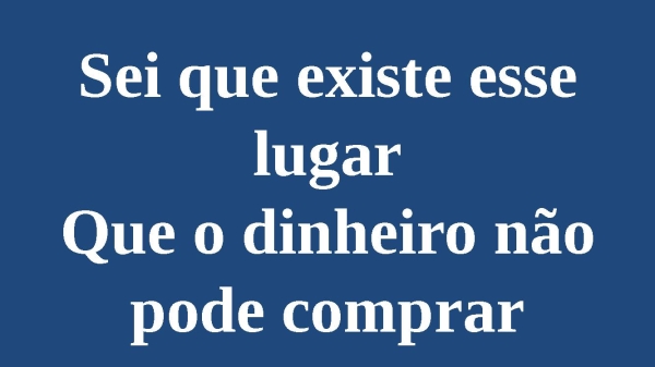 - Sei que existe esse lugarQue o dinheiro não pode comprar