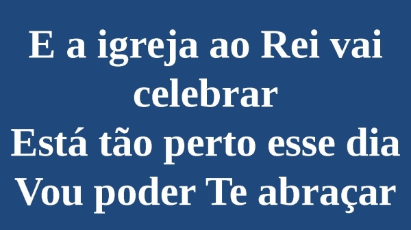 - E a igreja ao Rei vai celebrarEstá tão perto esse diaVou poder Te abraçar