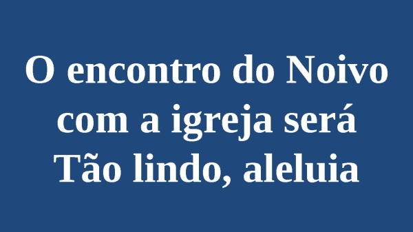 - O encontro do Noivo com a igreja seráTão lindo, aleluia