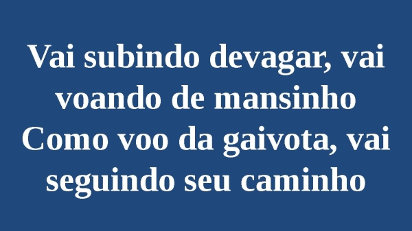 - Vai subindo devagar, vai voando de mansinhoComo voo da gaivota, vai seguindo seu caminho