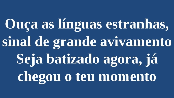 - Ouça as línguas estranhas, sinal de grande avivamentoSeja batizado agora, já chegou o teu momento