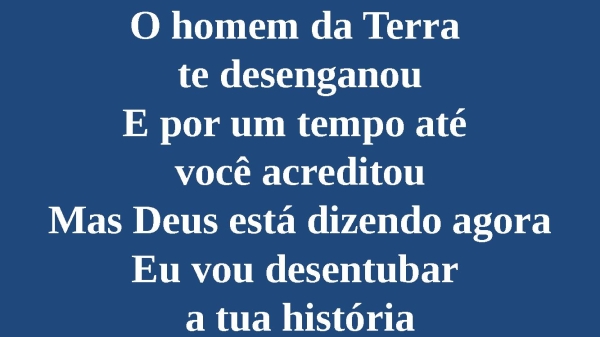 - O homem da Terra te desenganouE por um tempo até você acreditouMas Deus está dizendo agoraEu vou desentubar a tua história