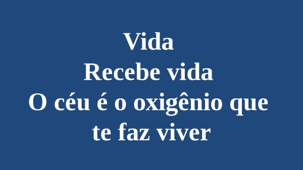 - Vida Recebe vida O céu é o oxigênio que te faz viver