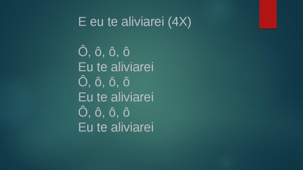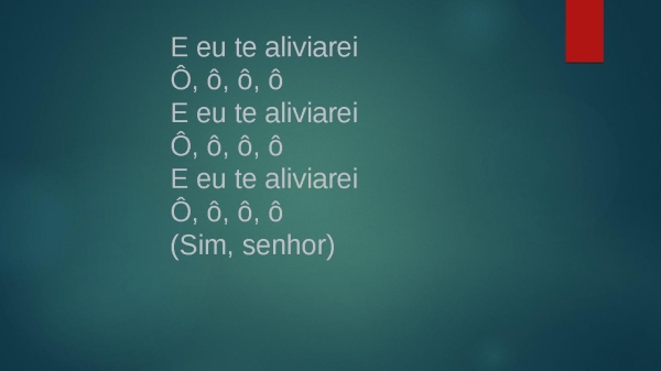 - E eu te aliviarei (4X)Ô, ô, ô, ôEu te aliviareiÔ, ô, ô, ôEu te aliviareiÔ, ô, ô, ôEu te aliviarei