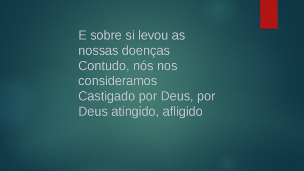 - E sobre si levou as nossas doençasContudo, nós nos consideramosCastigado por Deus, por Deus atingido, afligido