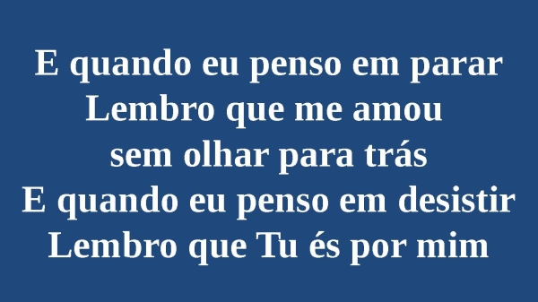 - E quando eu penso em pararLembro que me amou sem olhar para trásE quando eu penso em desistirLembro que Tu és por mim