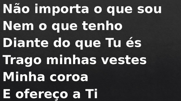 - Não importa o que souNem o que tenhoDiante do que Tu ésTrago minhas vestesMinha coroaE ofereço a Ti