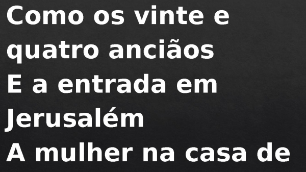 - Como os vinte e quatro anciãosE a entrada em JerusalémA mulher na casa de SimãoEu me lanço aos Teus pés
