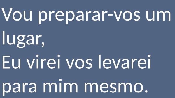- Vou preparar-vos um lugar,Eu virei vos levarei para mim mesmo.
