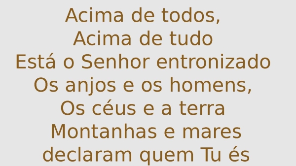 - Acima de todos, Acima de tudo Está o Senhor entronizado Os anjos e os homens, Os céus e a terra Montanhas e mares declaram quem Tu és