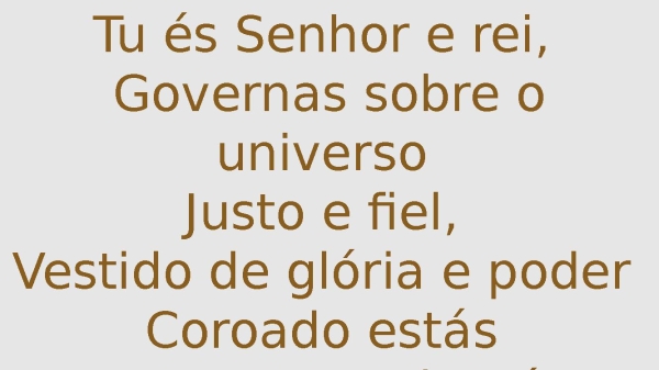 - Tu és Senhor e rei, Governas sobre o universo Justo e fiel, Vestido de glória e poder Coroado estás Pra sempre reinarás