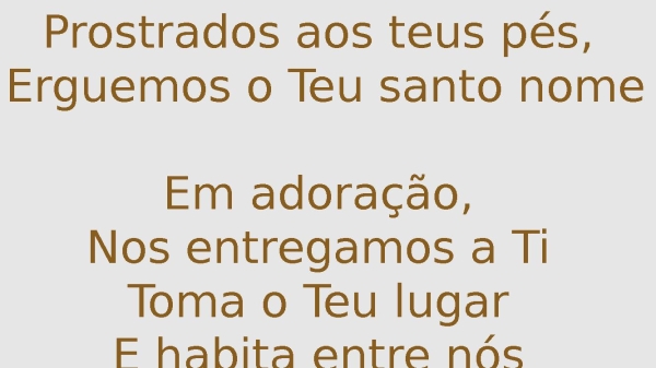 - Prostrados aos teus pés, Erguemos o Teu santo nome Em adoração, Nos entregamos a Ti Toma o Teu lugar E habita entre nós Óh Santo Deus