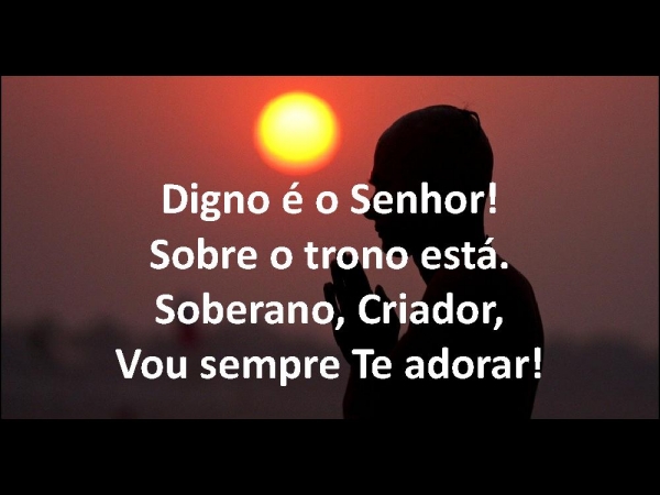 - Digno é o Senhor!Sobre o trono está.Soberano, Criador,Vou sempre Te adorar!