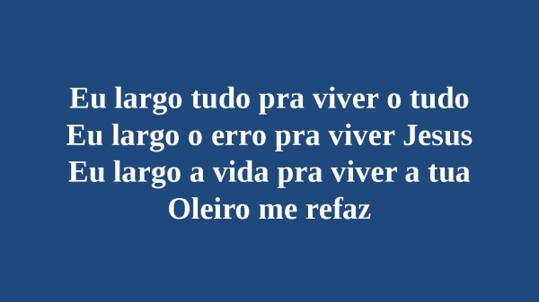 - Eu largo tudo pra viver o tudoEu largo o erro pra viver JesusEu largo a vida pra viver a tuaOleiro me refaz