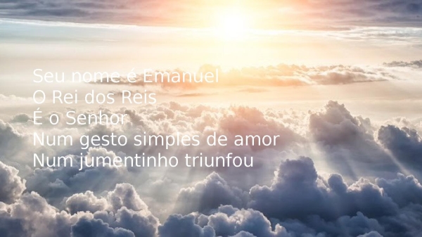 - Seu nome é EmanuelO Rei dos ReisÉ o SenhorNum gesto simples de amorNum jumentinho triunfou