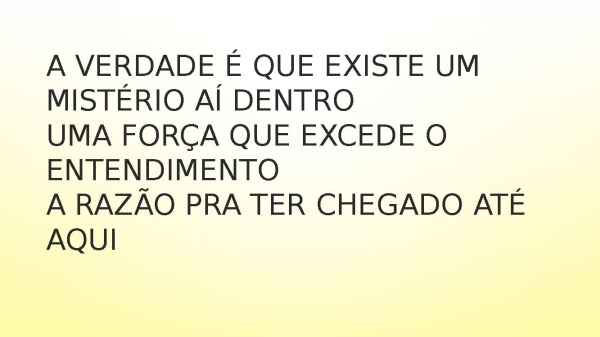 - A verdade é que existe um mistério aí dentroUma força que excede o entendimentoA razão pra ter chegado até aqui