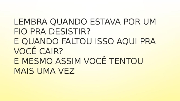 - Lembra quando estava por um fio pra desistir?E quando faltou isso aqui pra você cair?E mesmo assim você tentou mais uma vez