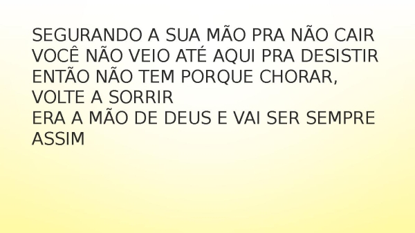 - Segurando a sua mão pra não cairVocê não veio até aqui pra desistirEntão não tem porque chorar, volte a sorrirEra a mão de Deus e vai ser sempre assim