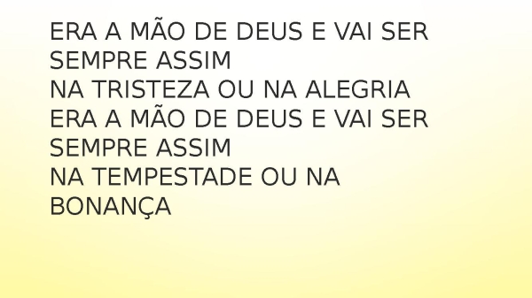 - Era a mão de Deus e vai ser sempre assimNa tristeza ou na alegriaEra a mão de Deus e vai ser sempre assimNa tempestade ou na bonança
