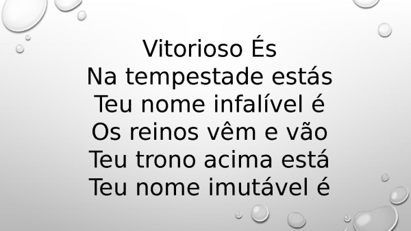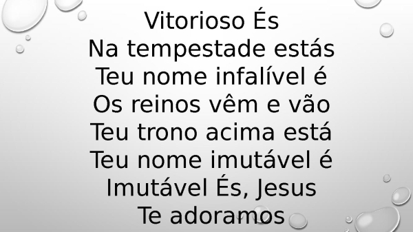 - Vitorioso ÉsNa tempestade estásTeu nome infalível éOs reinos vêm e vãoTeu trono acima estáTeu nome imutável é