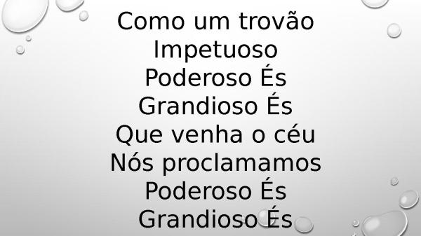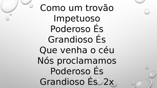 - Como um trovãoImpetuosoPoderoso ÉsGrandioso ÉsQue venha o céuNós proclamamosPoderoso ÉsGrandioso És