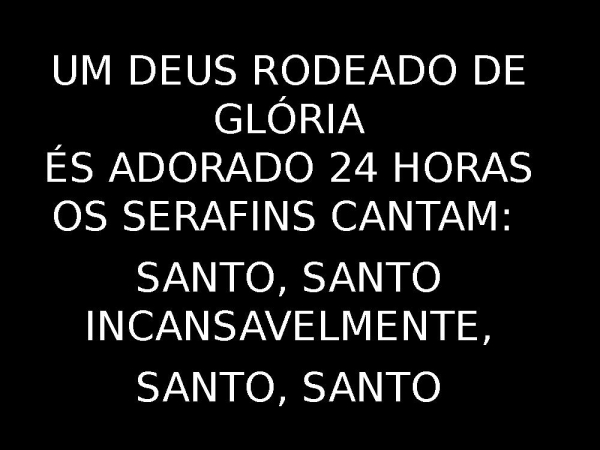 - Um Deus rodeado de GlóriaÉs adorado 24 horasOs serafins cantam: Santo, SantoIncansavelmente,Santo, Santo