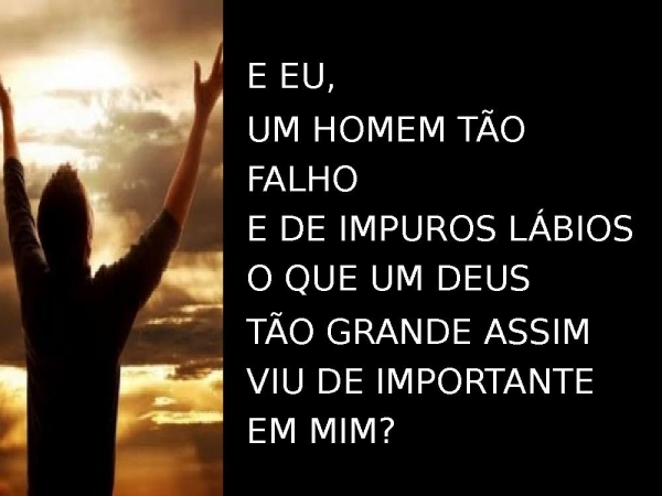 - E eu, um homem tão falhoE de impuros lábiosO que um Deus tão grande assimViu de importante em mim?